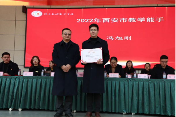 教务处主任何鹏飞为2022年西安市教学冯旭刚老师颁奖