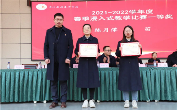 总务处副主任张晨卿为2021-2022学年度春季浸入式教学比赛一等奖教师颁奖
