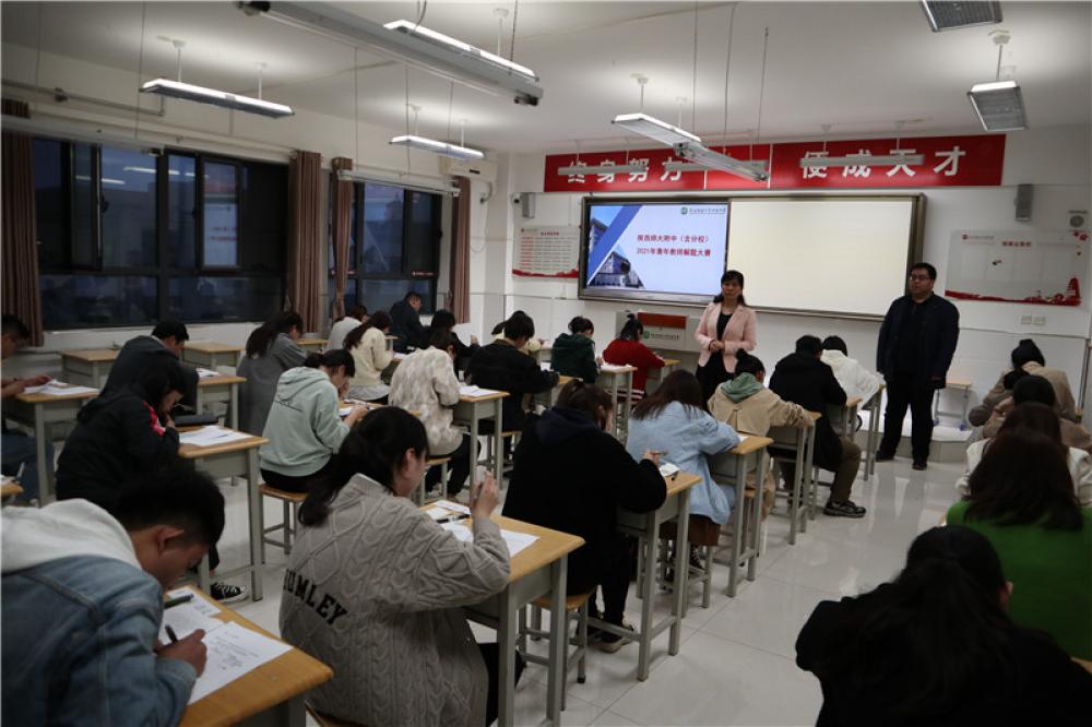 为引导我校青年教师深入开展中高考试题研究,准确把握命题规律,进一步提升解题技能,增强日常教学的针对性、科学性和有效性, 4月22日晚上,陕西师大附中、陕西师大附中分校2021年青年教师解题大赛如期举行。教龄6年以内及来我校工作第一轮带初中或高中的青年教师参加了此次比赛...