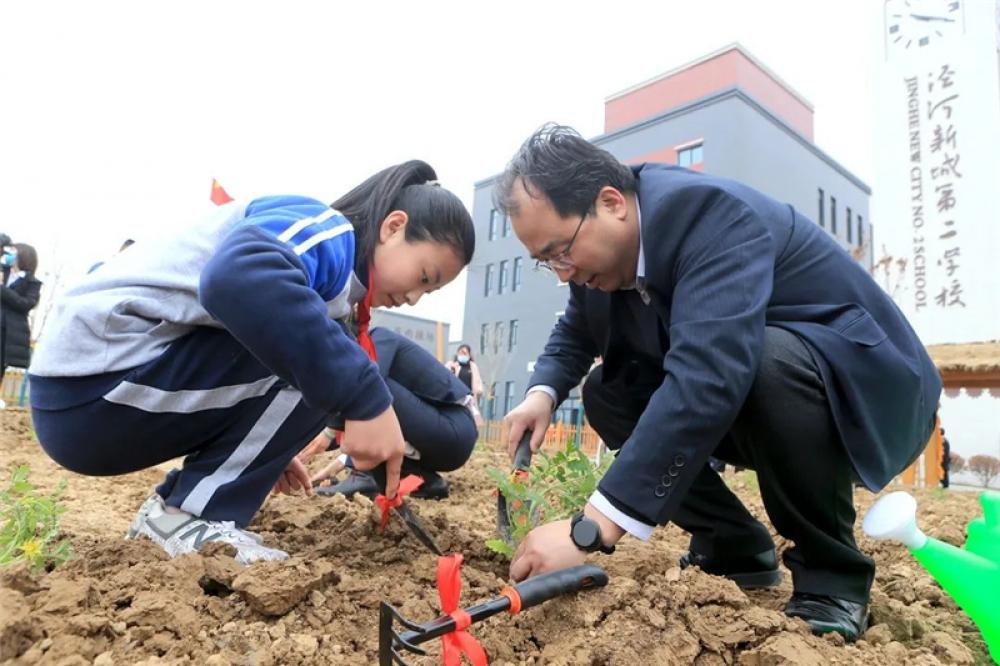 2021年3月17日,我校教育联合体成员校、泾河新城第二学校开展了“爱学习·爱劳动·爱祖国——新时代劳动教育开年第一垦”活动。泾河新城教育卫体局书记马兴林、副局长李宏,泾河新城农业农村局局长刘晓雷,陕西师大附中校长冯军,以及教师、家长与学生代表,参加了此次活动。活动由泾河新城第二学校执行校长刘建玲主持。...