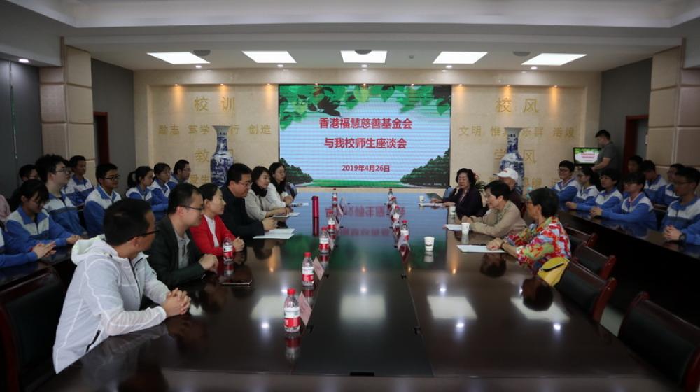 4月26日下午14时,陕西师大附中2019年 “香港福慧慈善基金会奖学金”颁发座谈会在我校崇是楼大会议室举行。香港福慧慈善基金会主席严崔常敏居士,基金会董事杜佩玲、宋伟文、宋何丽燕居士,陕西师大教育基金会杨高玕、郭庆老师,陕西师大附中校办副主任王建军,高中年级组长符洁、陈德裕、师家庆,校办王茜老师参加座谈会。会议由王建军主持。...