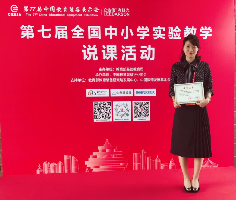 近日,我校化学组曾文静老师在山东青岛举行的第七届全国中小学实验教学说课大赛中荣获最高奖项,获得“2019全国实验教学能手”称号。