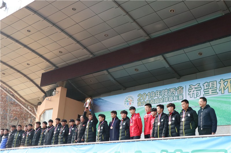 12月20日上午,陕西省“希望杯”2019年青少年校园足球锦标赛闭幕式在我校举行。陕西省教育厅副厅长赵昶葆,陕西省教育厅体卫艺处处长关荷,陕西省体育局青少处处长苏晓刚,我校校长冯军,党委书记陈勇刚,全体裁判员、运动员参加了闭幕式。闭幕式由陕西省教育厅体卫艺处鲁文华老师主持。