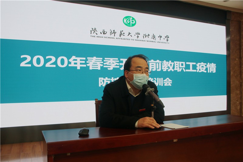 张帆副校长主持培训会,他郑重介绍了我校疫情防控和复学前的各项准备工作的相关情况,并对疫情防控和复课后的有关工作重点强调。