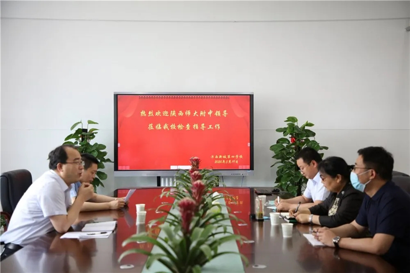 5月19日下午,陕西师大附中校长,沣西新城第二、第四学校校长冯军、陕西师大附中校办主任张辉一行,前往沣西新城两校检查指导开学复课工作。
