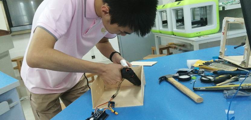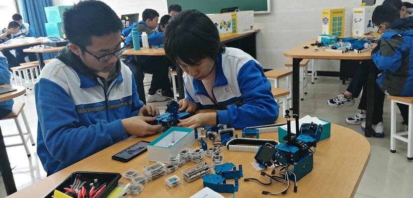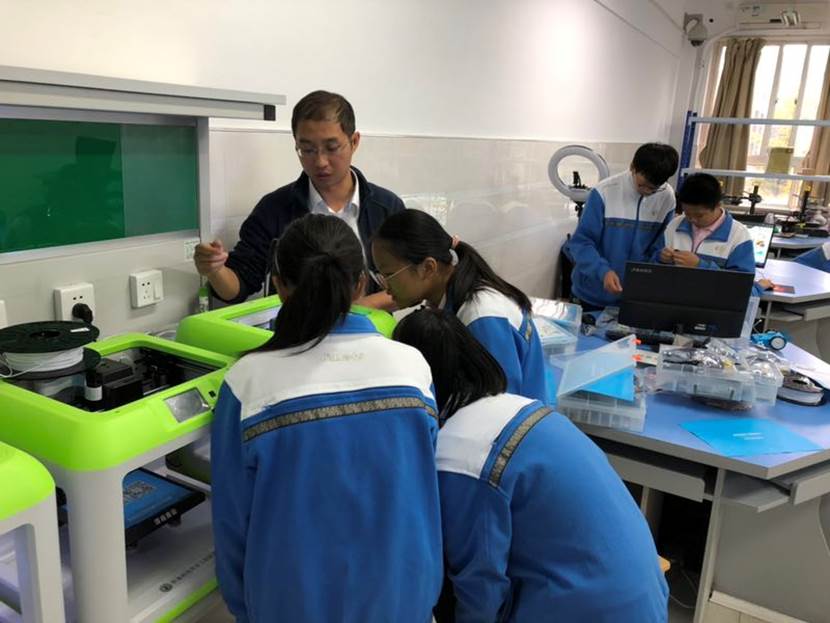 在2019年9月上学期投入使用,开设3D智造社团课程,受到学生广泛欢迎,报名人数爆满,由于人数过多不得不分为每周两次开展。学生经过16课时学习,掌握了3D打印,智能模块编程,手机应用开发。