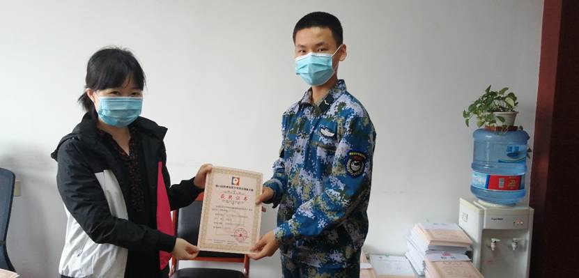 省科协老师为我校詹鑫尧同学颁发青少年创新大赛省一等奖