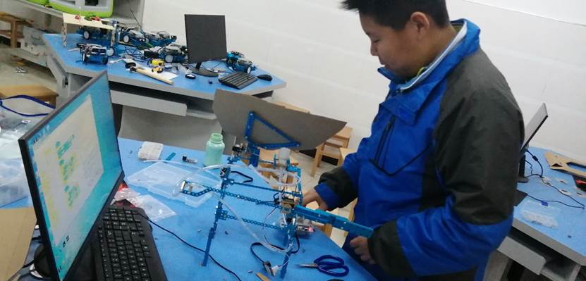 为丰富提升我校学生创客素养,开拓STEAM教育,在校领导的支持下,截至2019年7月初步建成集机器人讲授教室,机器人场地训练教室,3D创客智能开源教室,通用技术结构加工教室,四位一体的综合创客培养人才孵化中心。