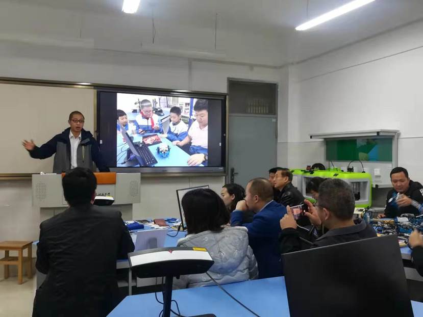 我校智慧创客专用教室,先后多次为全省创客骨干老师培训,起到帮扶辐射作用。与陕师大研究所合作,为高校研究生智慧课堂教学实践提供支撑,为科创教育研究提供第一手数据。