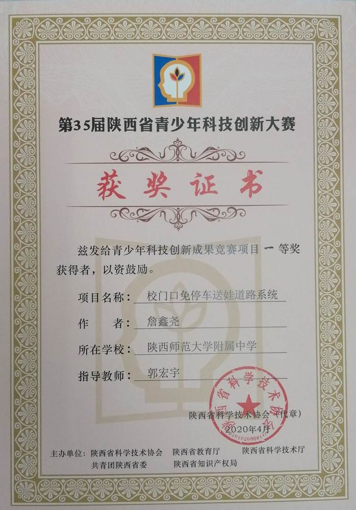 在2020年颁布,2019年第35届陕西省青少年创新大赛中斩获佳绩:
