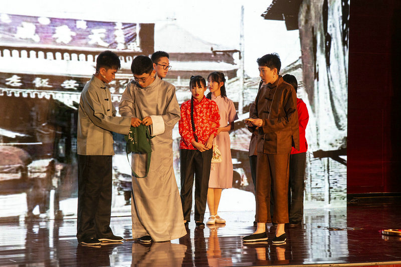 活动在我校“斧头剧社”第一部历史题材话剧《一曲悲歌憾民心》的公演中拉开序幕。该剧以张寒晖在陕西省立二中(陕西师大附中前身)的教育教学活动为主线,追寻烈士革命足迹,通过张寒晖老师给学生授课,关心启迪民众、创作《松花江上》等剧情,塑造以张寒晖为代表的一代附中教师形象,也塑造了一个热爱祖国,热爱教育事业,拯救人民于水火之中的“国士”形象。我校“斧头剧社”成员在陕西师范大学李晨子老师、我校语文组杨梅老师的指导下,深情演绎,将大家带入到那个风起云涌的年代,让大家充分感受到张寒晖的人格魅力和我校的革命传统,真切表达了附中师生对寒晖精神的深深敬意、对建党百年的浓厚情怀。