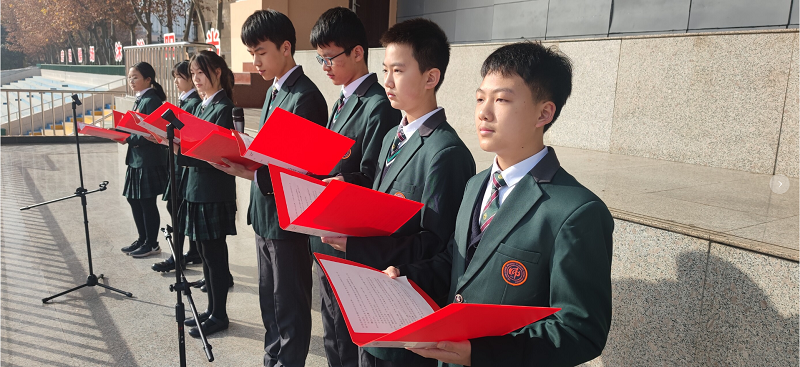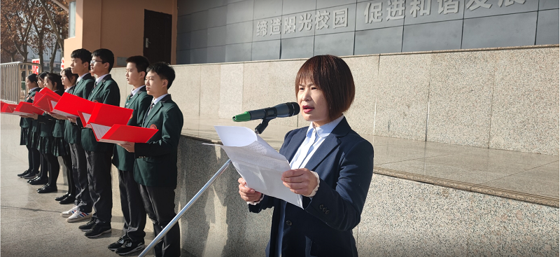 伴随着庄严的国歌,五星红旗冉冉升起,拉开了活动的序幕。鲍青青副主任介绍了宪法日的由来,并强调宪法日设立的目的不仅在于纪念现行宪法的诞生,更在于在全社会弘扬宪法精神,树立宪法权威,培养社会公众崇尚宪法、服从宪法和遵守宪法的意识。今年是国家“八五”普法的首年,学校通过“宪法晨读”活动加强对青少年学习宪法的宣传教育。