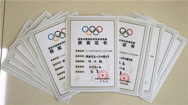 近日,“2021年雁塔区中小学生足球联赛”落下帷幕,我校高、初中代表队分获冠军。