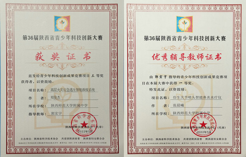 近日,第36届陕西省青少年科技创新大赛评选活动落下帷幕。我校再获佳绩,获得一等奖1项、二等奖2项,三等奖2项,优秀奖1项,成绩全省领先。郭宏宇老师获“优秀辅导老师”荣誉称号。本次比赛由网络中心马立主任领队,郭宏宇、刘宝瑞老师作为教练指导学生创作。