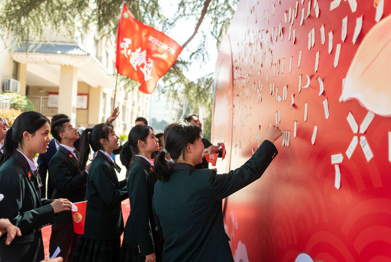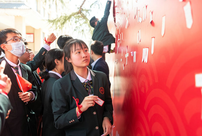 一笔一画,既是承诺,亦是鞭策。同学们以梦为马,执笔为戈,在许愿墙上落笔有力,汇聚成为梦想而战的必胜决心。