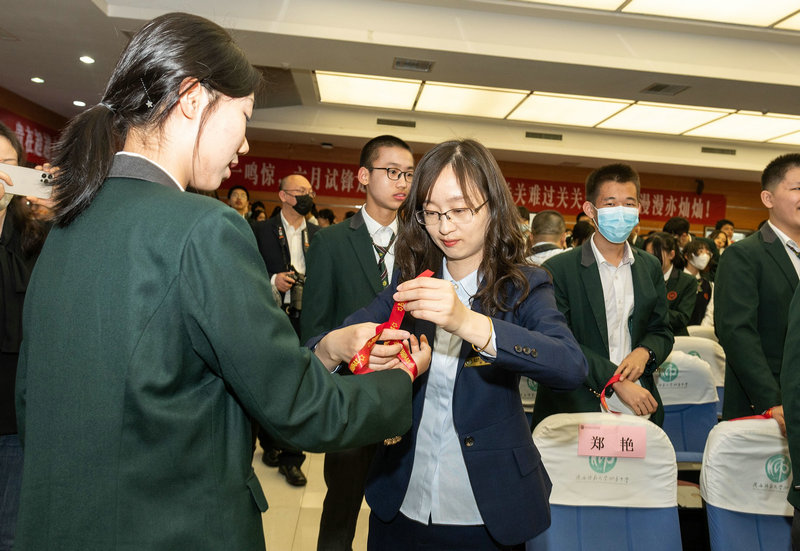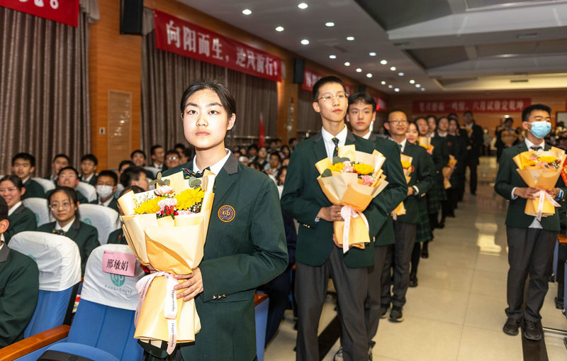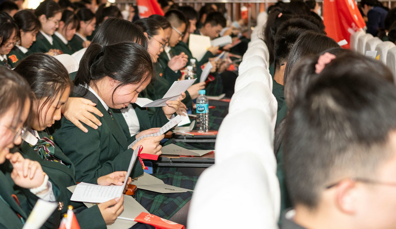 同学们带着老师的殷殷祝福,一起庄严宣誓。用最坚定的声音喊出他们的决心,把这份坚毅与自信献给母校,送给自己。