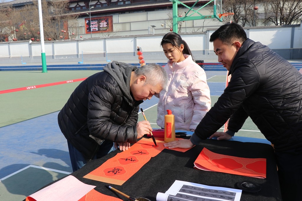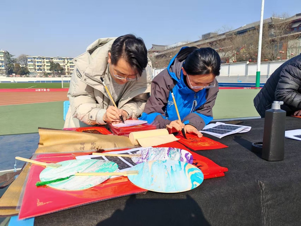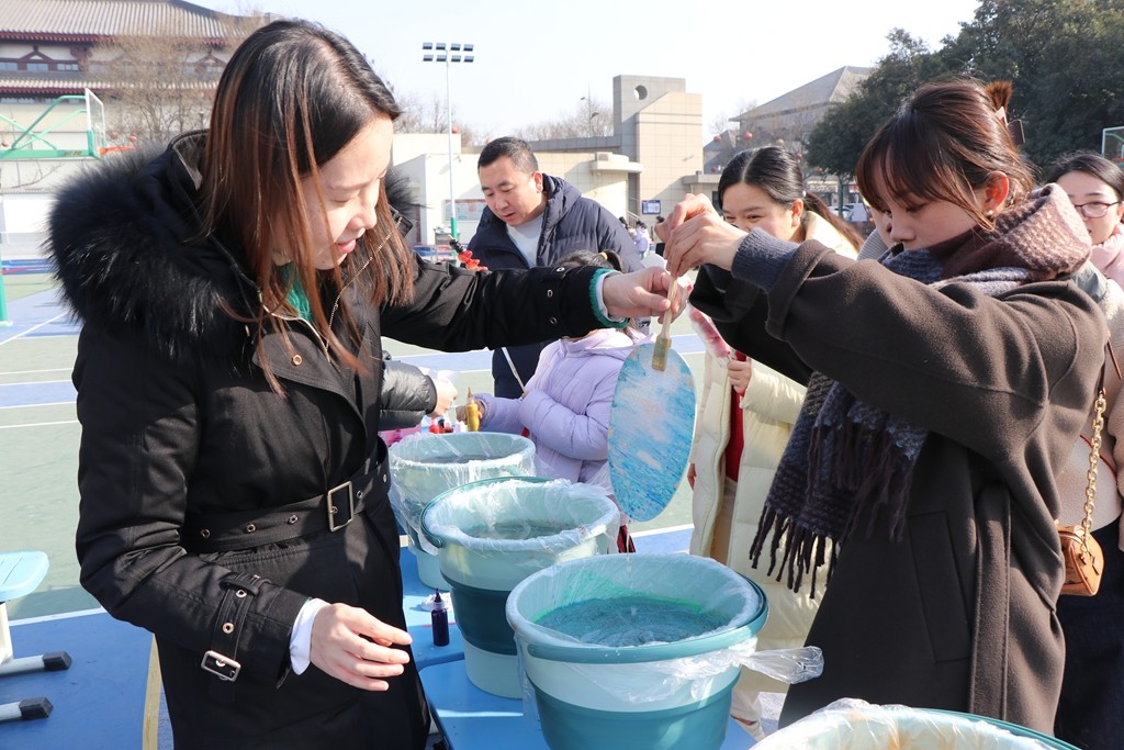 14时整,活动正式拉开帷幕。老师们满怀喜悦之情,纷纷汇聚于篮球场参与活动。在春联书写区,擅长书法的教职工们现场挥毫泼墨,一幅幅寓意吉祥、书写精湛的春联跃然纸上,为即将到来的新春佳节增添了喜庆的氛围。老师们不仅可以欣赏到精美的春联作品,还可以亲自撰写,以笔传情,送上暖暖的新春祝福。