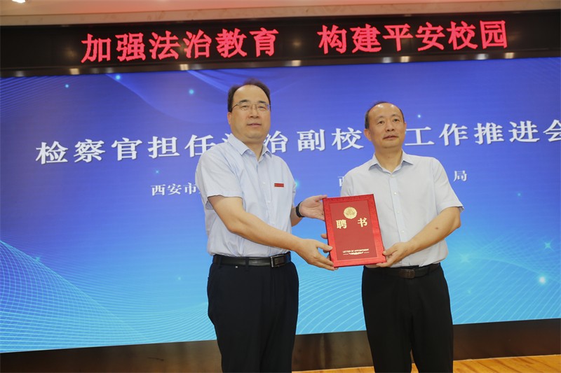 为深入贯彻落实法治教育进校园的工作要求,进一步增强师生法治观念,营造平安、和谐、文明的校园环境,我校聘任西安市人民检察院党组书记、检察长陈明为法治副校长,并于5月22日上午举行聘任活动。