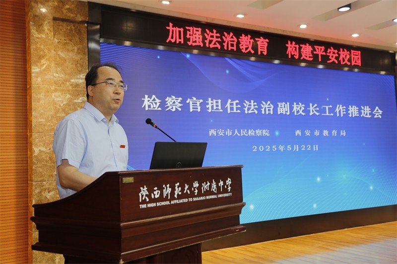 陕西师范大学党委常委、副校长王云博在讲话中指出,附中聘任陈明检察长担任法治副校长,是落实法治校园建设的要求,也是通过专业力量培养青少年法治意识、引导预防校园欺凌、青少年犯罪等突出问题的现实需要。相信在陈明检察长的支持和指导下,附中在开展法治教育、推动法治校园建设方面将再上台阶。