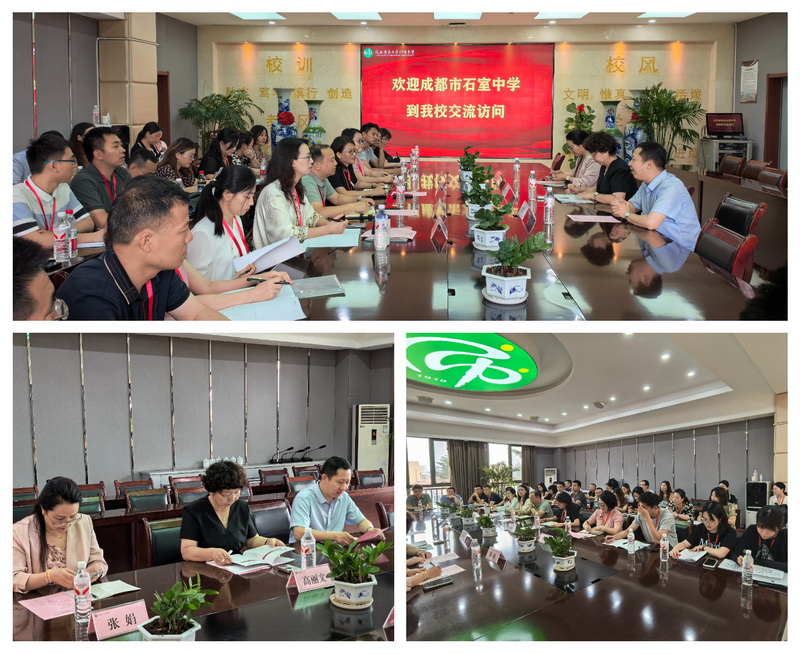 2025年6月14日上午,四川省成都市石室中学副校长赵清芳,专职副书记廖林春携中层干部、学科教师一行三十余人来我校交流访问。我校副校长高丽文,部分中层领导及教师参加了本次访问活动。