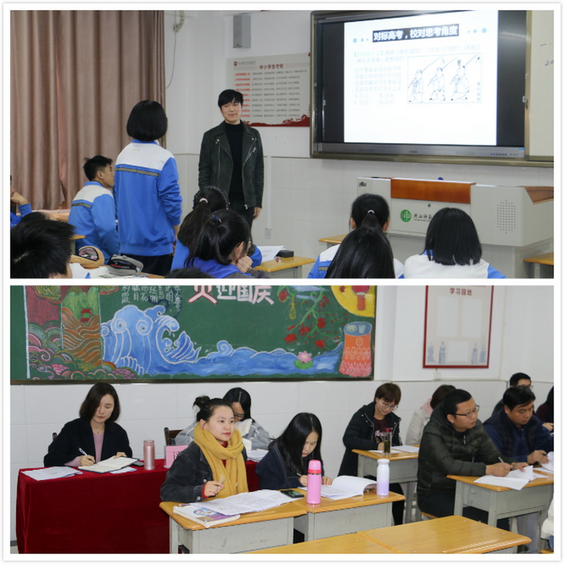 11月12日、13日,承担试卷讲评课的九位老师为我们展示出了九节高水平的试卷讲评课。老师们结合阅卷的数据统计巧妙地进行教学设计,对试卷中的试题进行重新分类和组合,分层次、有针对性地组织课堂教学。教学过程中,老师们既能突出重点,又能突破难点,从题目到知识、方法、能力,以点带面地让学生通过试卷的讲评回顾知识,提高分析问题和解决问题的能力。同时,结合对学生的具体答卷情况的统计,老师们能关注每一个学生,这也让试卷讲评的效果大大提高。课后,省市学科教学方面的专家对各学科进行评课,专家们一致认为今年的试卷讲评课设计科学合理、讲解准确有效,课堂异彩纷呈,是高三试卷讲评课的很好的创新。紧接着每个教研组内也就此次试卷讲评课展开了积极的研讨,老师们各抒己见,教研氛围浓厚。