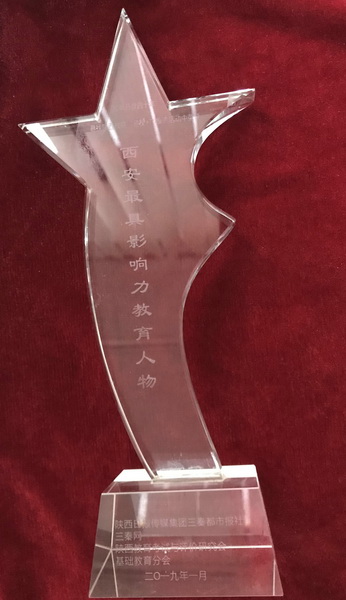 冯军校长荣获“改革开放四十年 西安最具影响力教育人物”奖杯