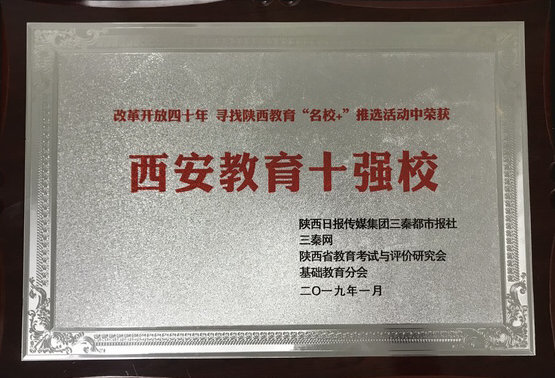 我校荣获西安教育十强校”(中学)荣誉奖牌