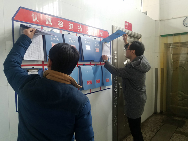 在食堂经理的引导下沙校长等同志对食堂环境卫生、明档区餐具的清洗消毒摆放、食堂操作间(洗消间)的安全卫生以及食堂各种记录等逐一进行了检查,对检查过程中发现的一些问题,进行了现场指导并提出改进措施。