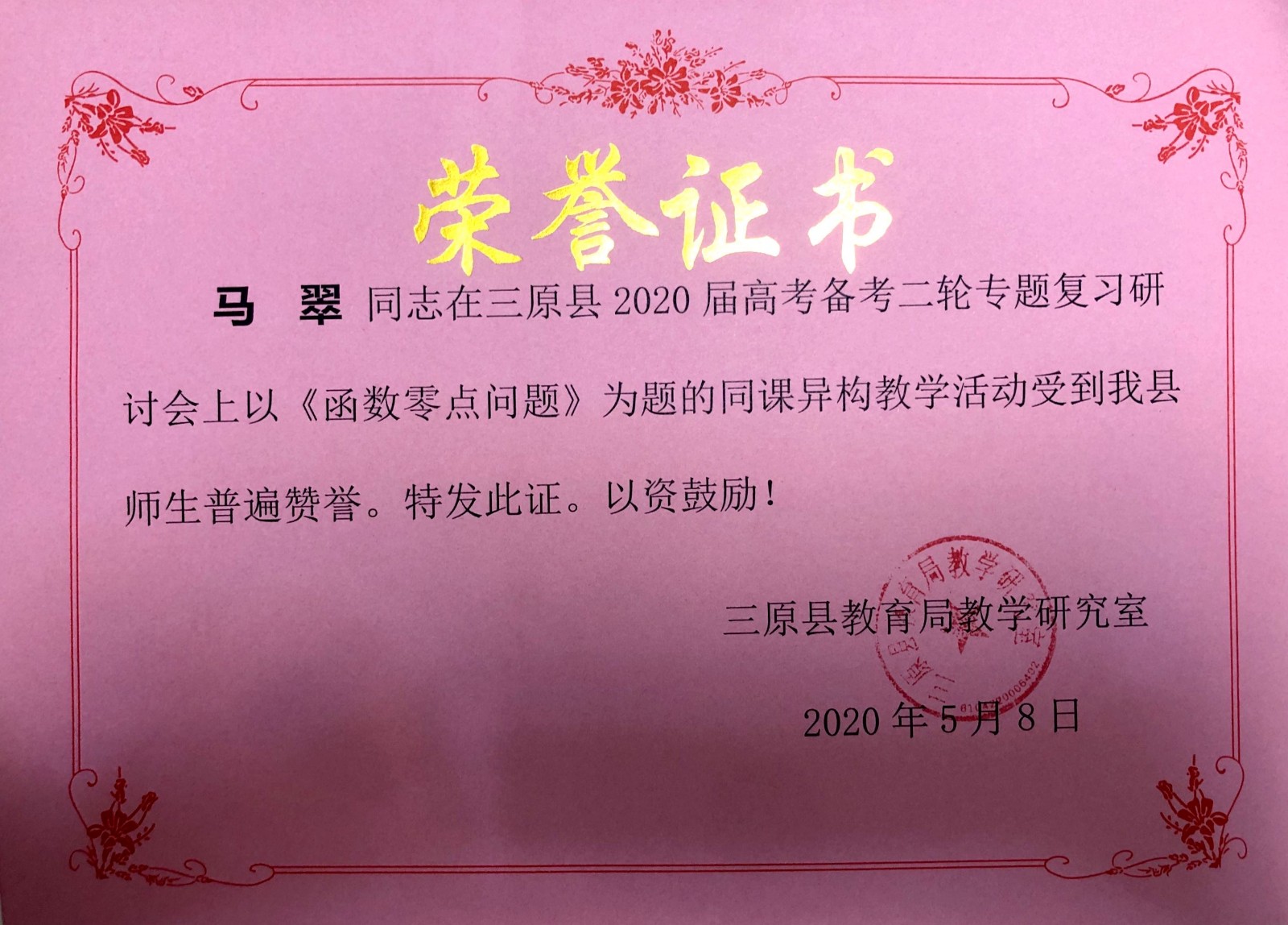 2020年5月8日,研修共同体主持人李涛老师,成员马翠老师,受邀参加三原县教育局教学研究室组织的高考二轮复习研讨会。